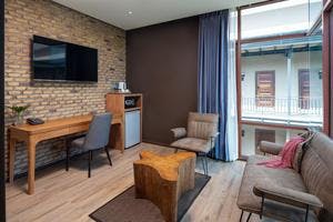 suite bathroom by the master bedroom. An additional separate seating area with sofa-bed allows extra room for stretching out and enjoying the privacy of the larger space, while enjoying the additional comforts of the TV and entertainment system. These highlights, together with the comfortable balcony overlooking the water, make each of our Suites feel like its own unique world, where time slows down and the stresses of everyday life are very far away.